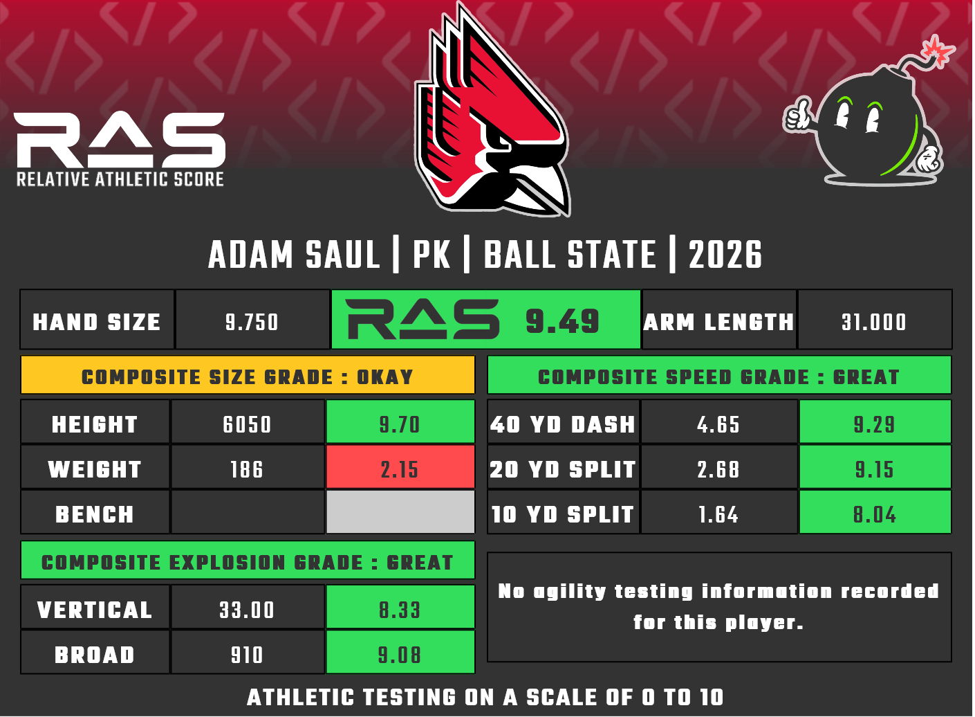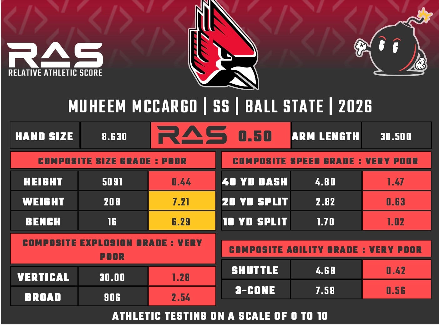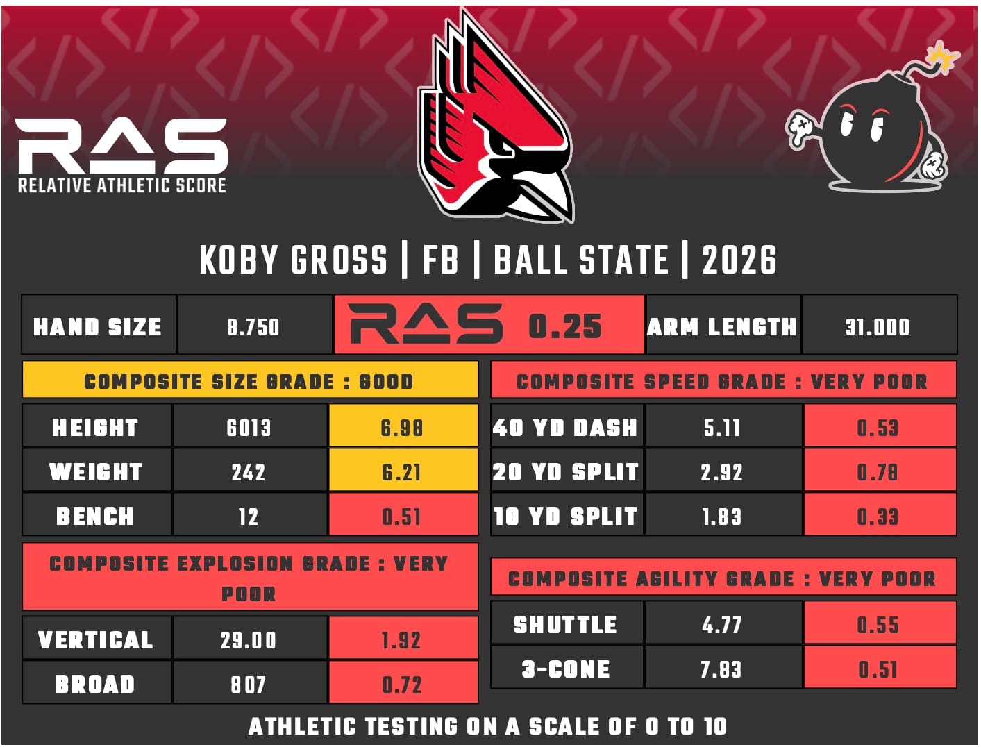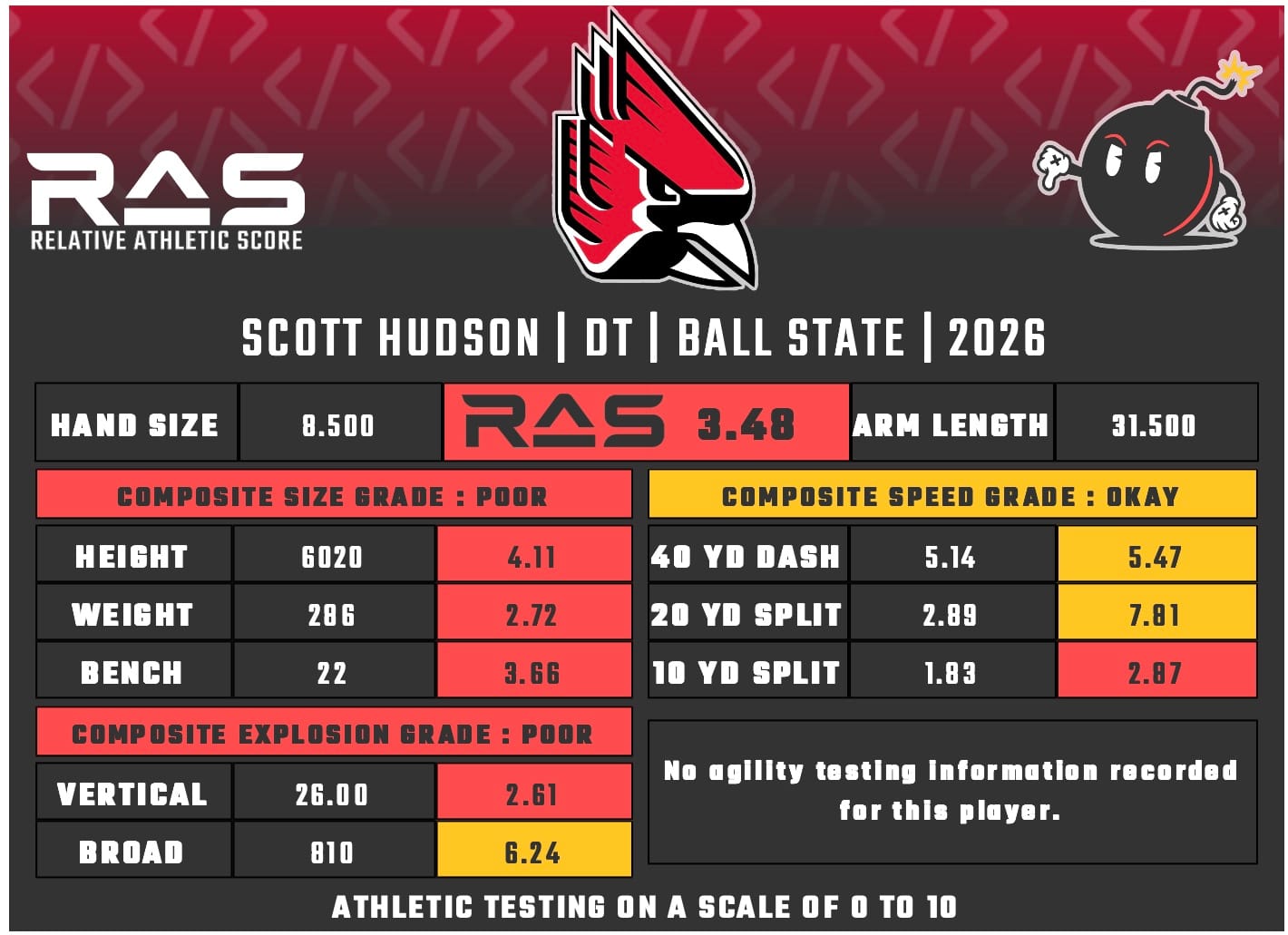For our reports, we’ve pulled raw numbers from both Draft Scout and RAS.football to populate RAS score cards. These cards are used with express written permission of RAS’ creator Kent Lee Platte.
