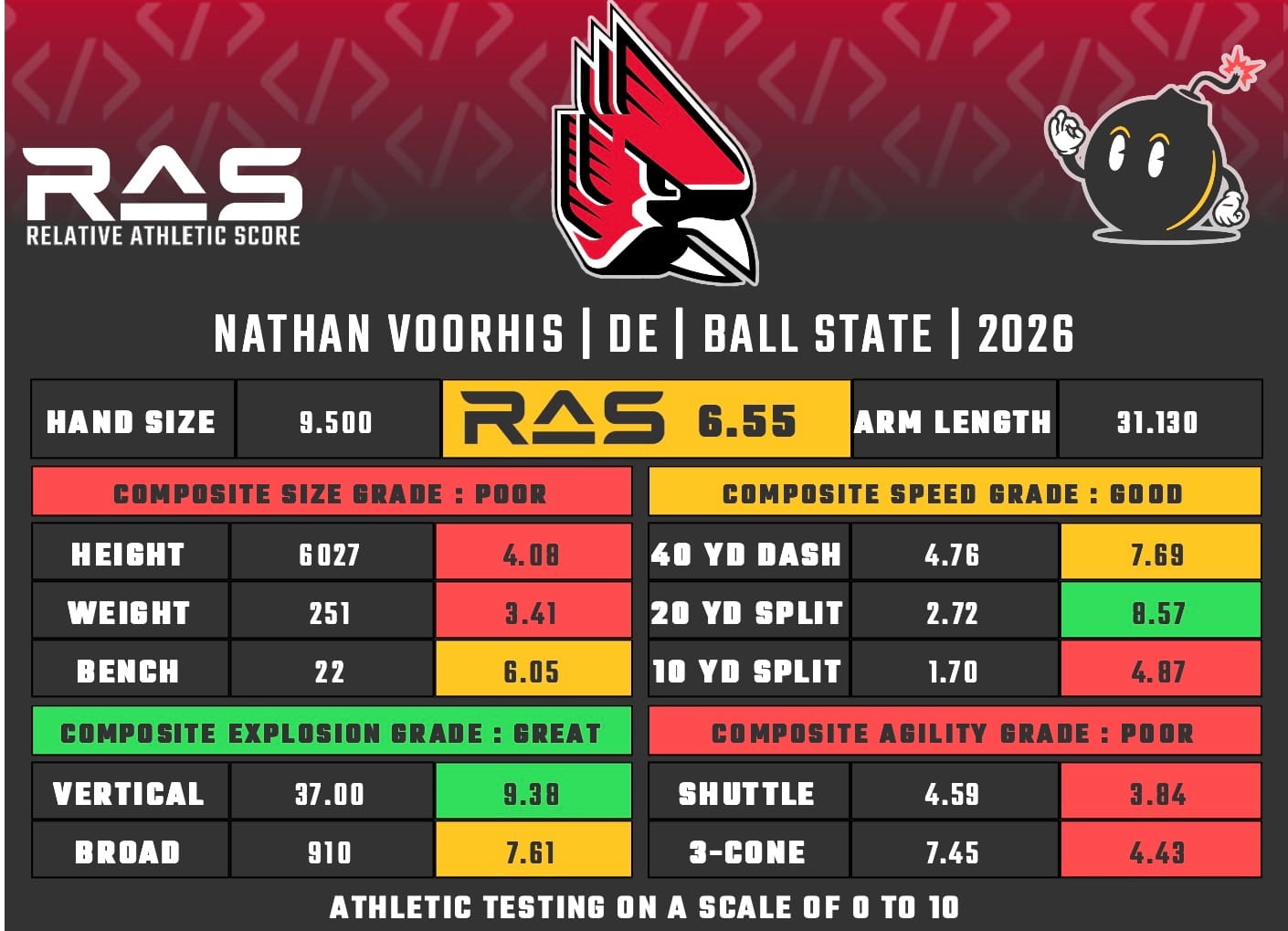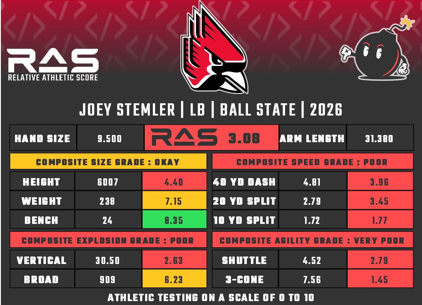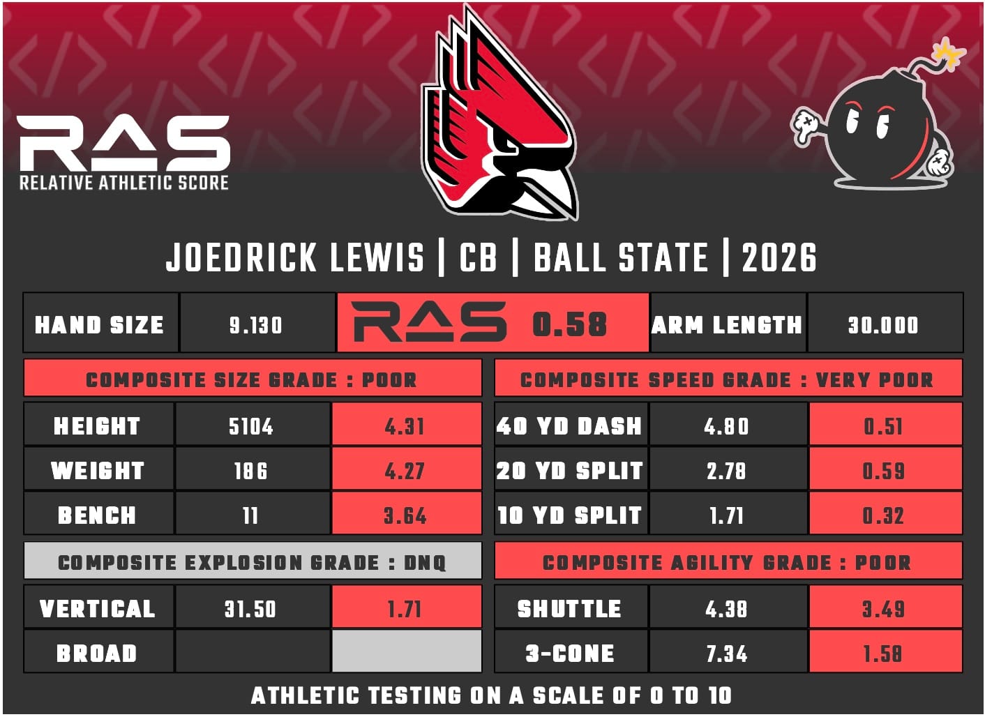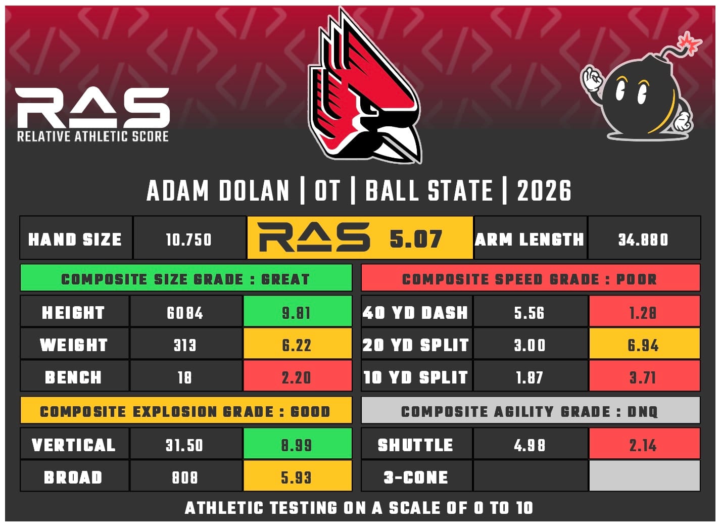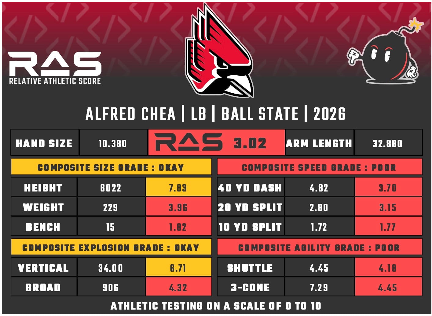 For our reports, we’ve pulled raw numbers from both Draft Scout and RAS.football to populate RAS score cards. These cards are used with express written permission of RAS’ creator Kent Lee Platte.