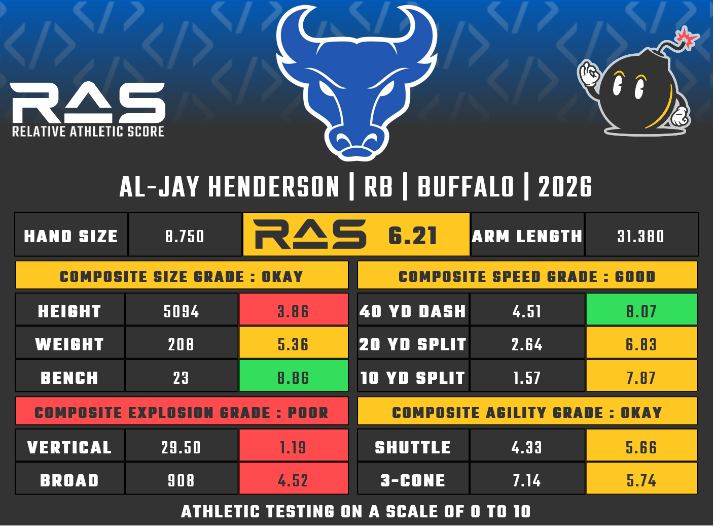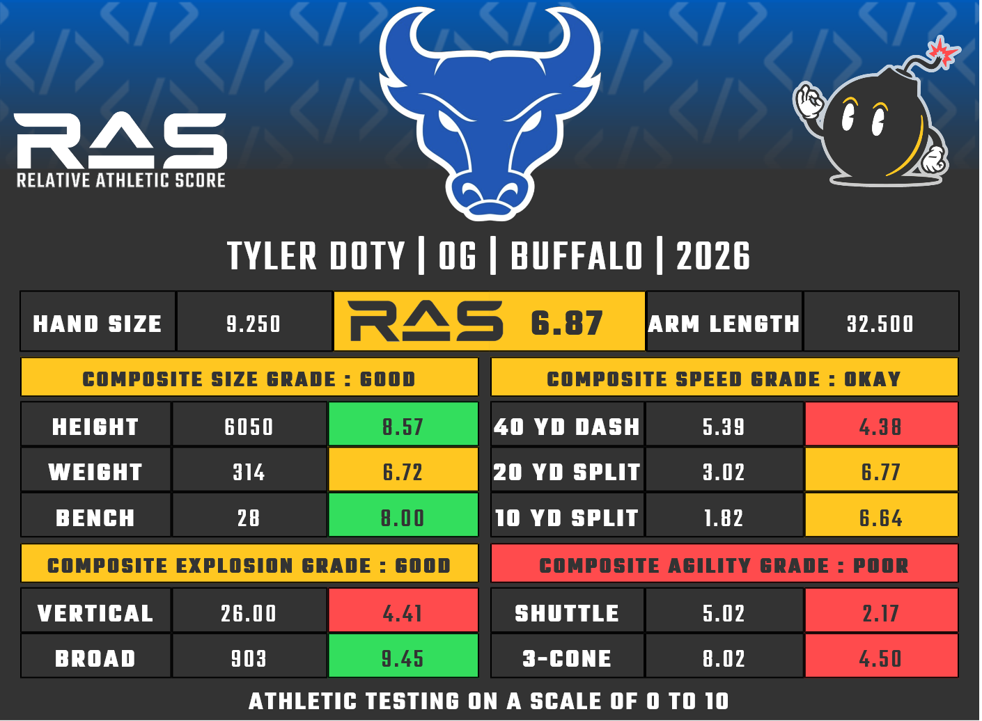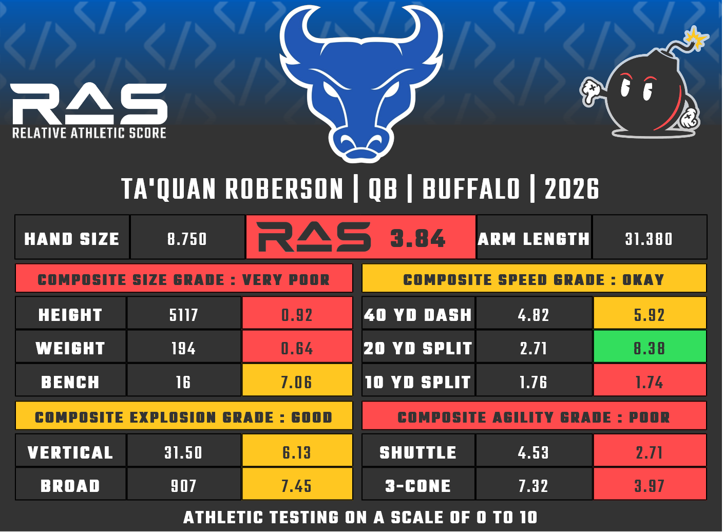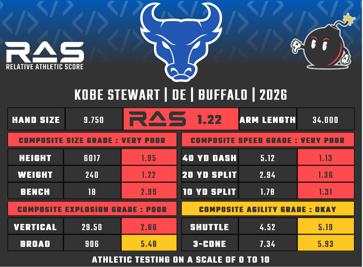 For our reports, we’ve pulled raw numbers from both Draft Scout and RAS.football to populate RAS score cards. These cards are used with express written permission of RAS’ creator Kent Lee Platte.