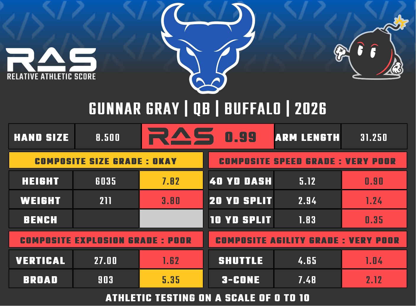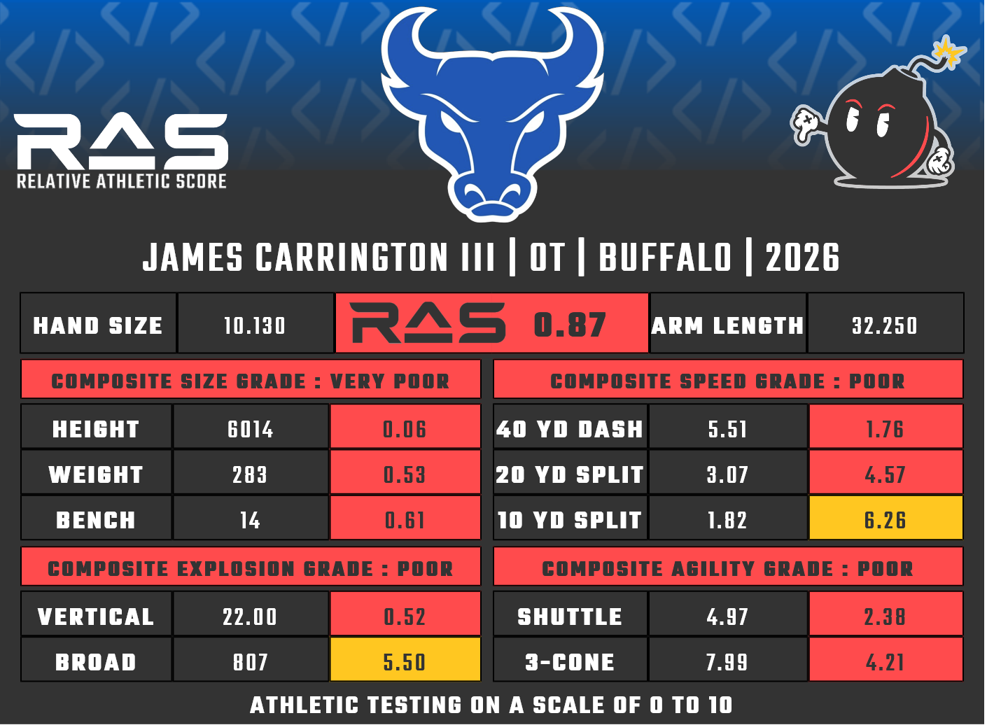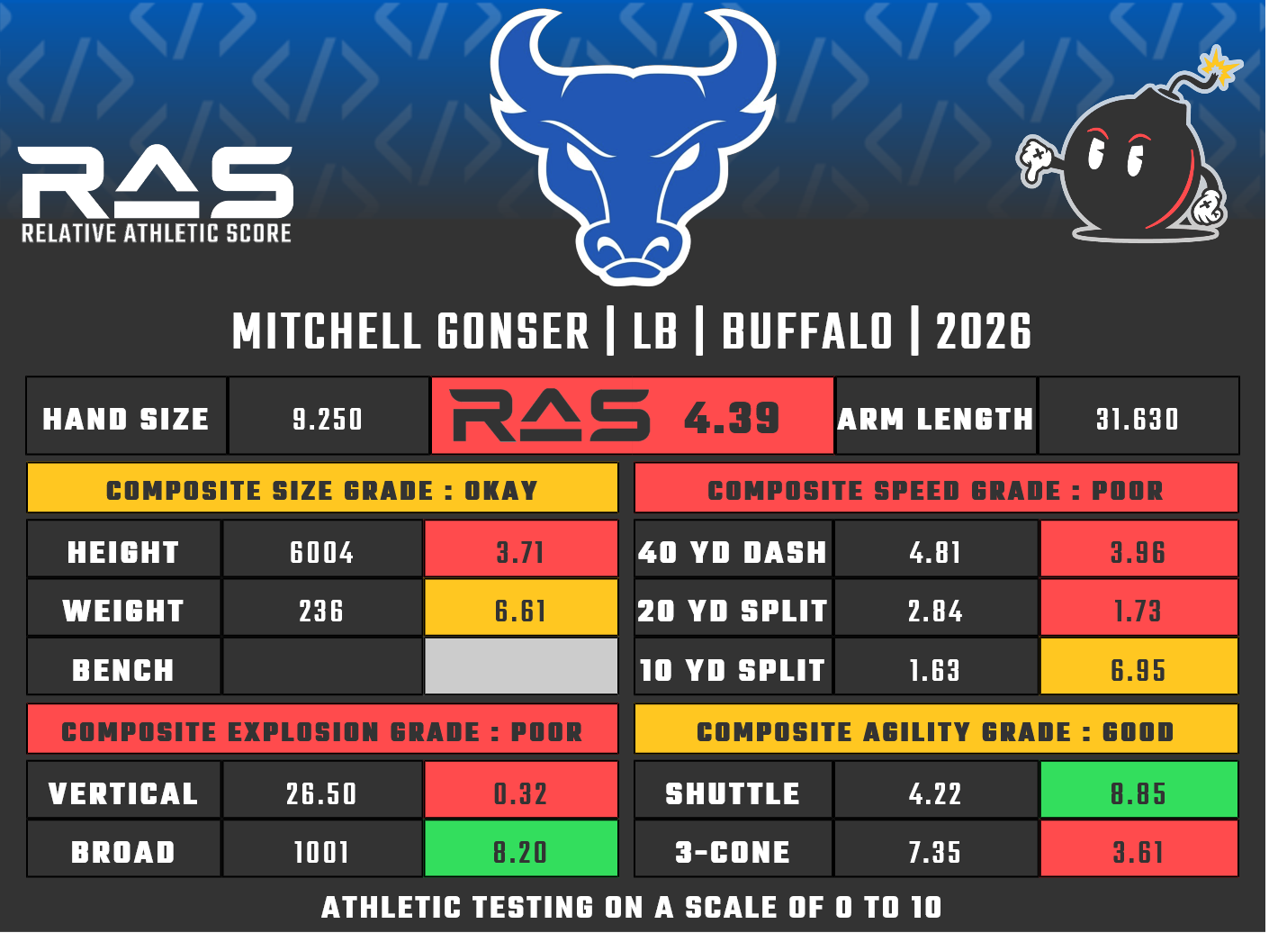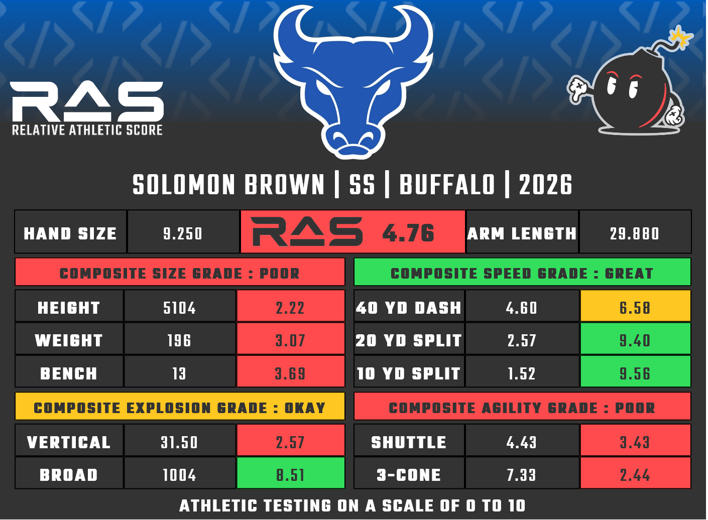 For our reports, we’ve pulled raw numbers from both Draft Scout and RAS.football to populate RAS score cards. These cards are used with express written permission of RAS’ creator Kent Lee Platte.