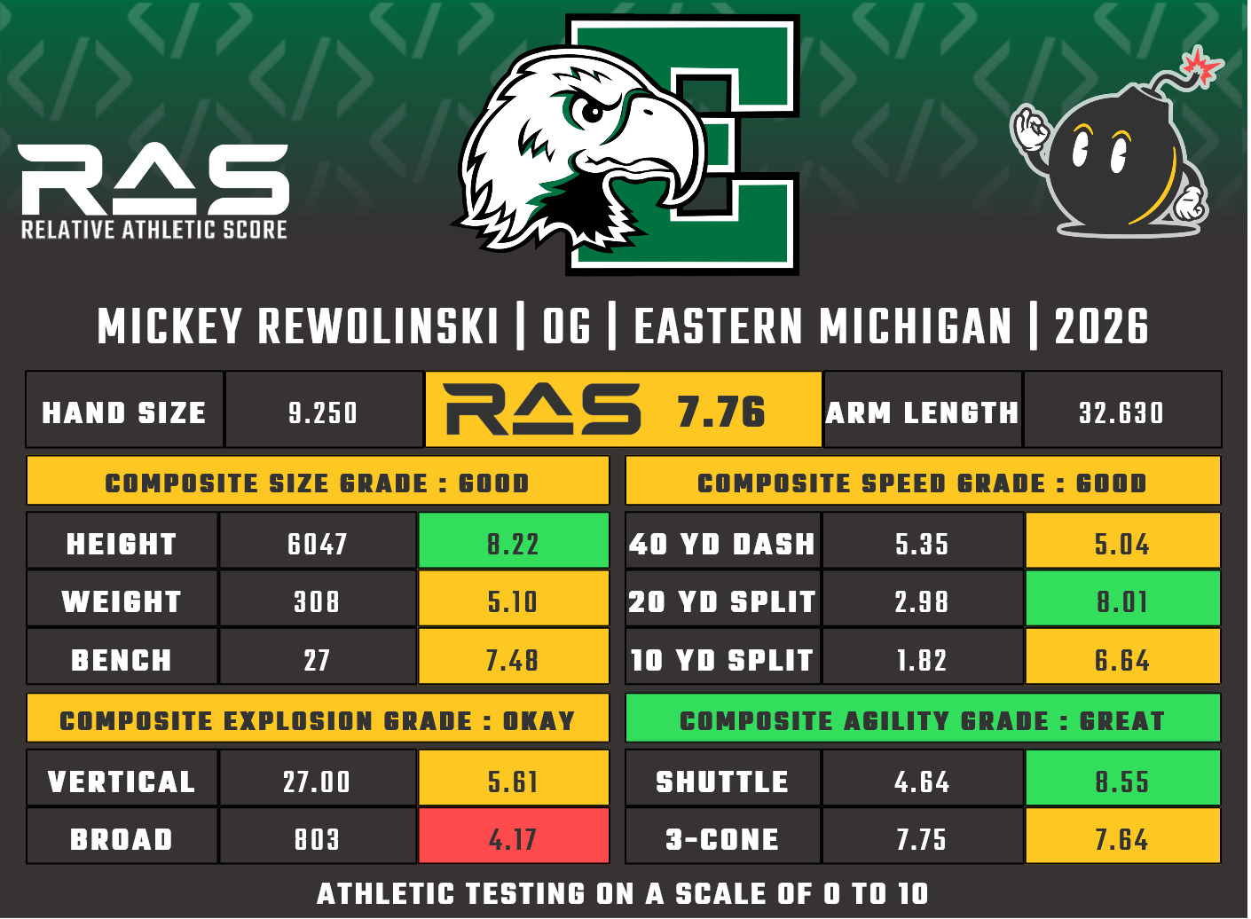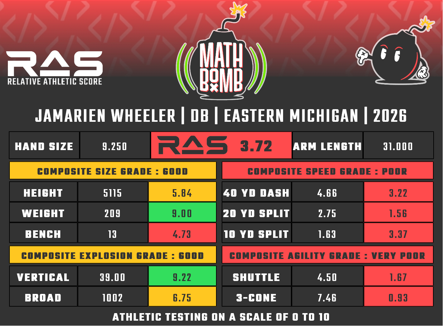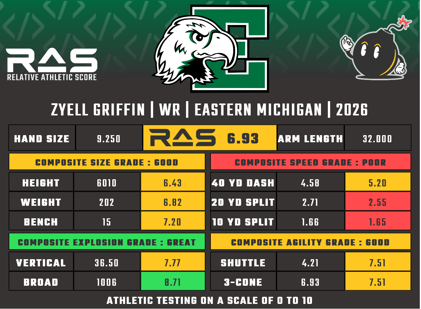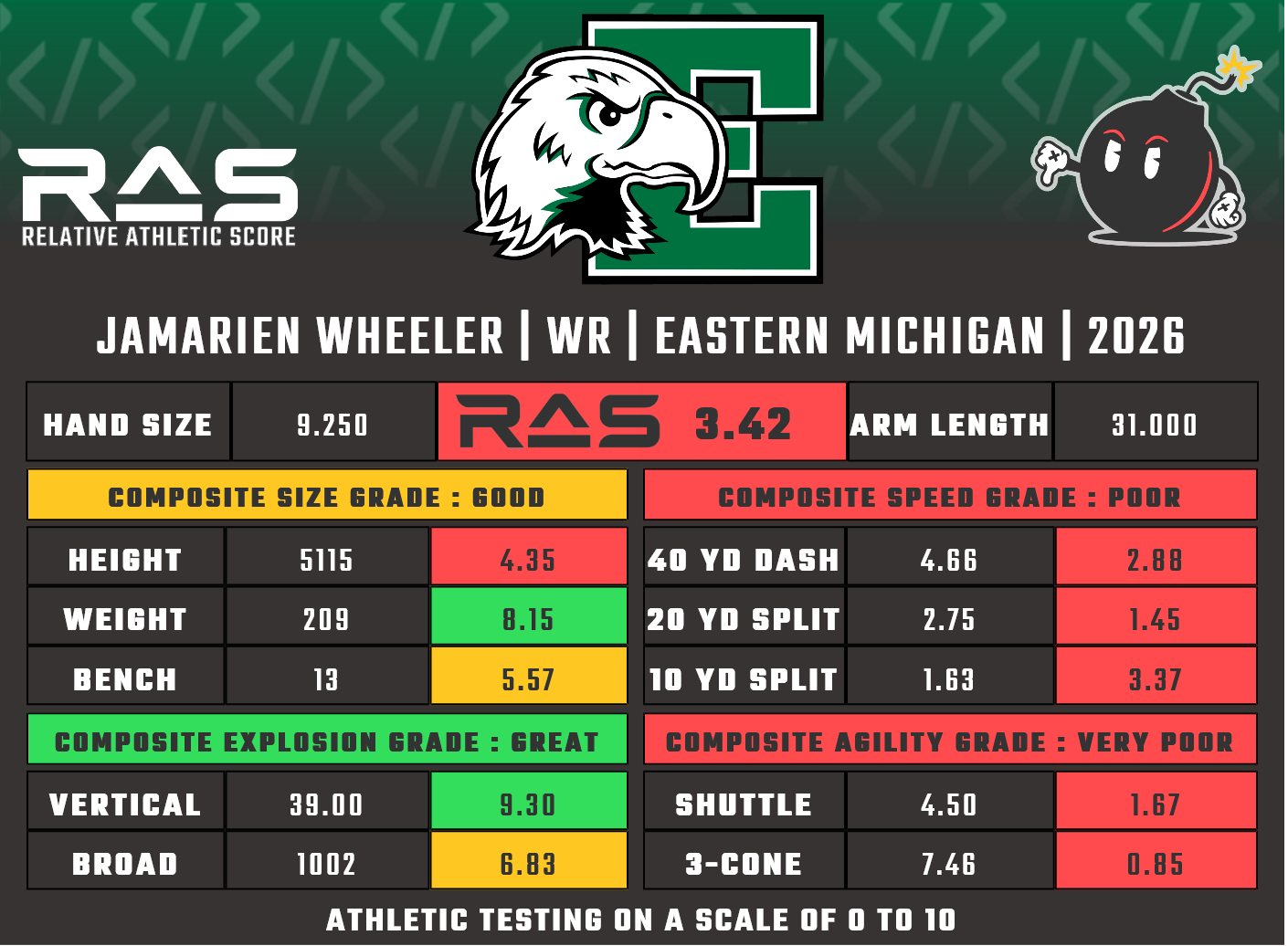 For our reports, we’ve pulled raw numbers from both Draft Scout and RAS.football to populate RAS score cards. These cards are used with express written permission of RAS’ creator Kent Lee Platte.