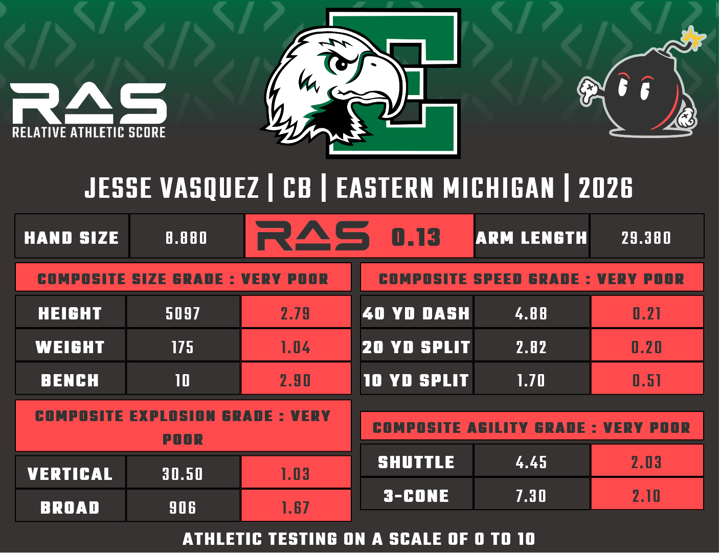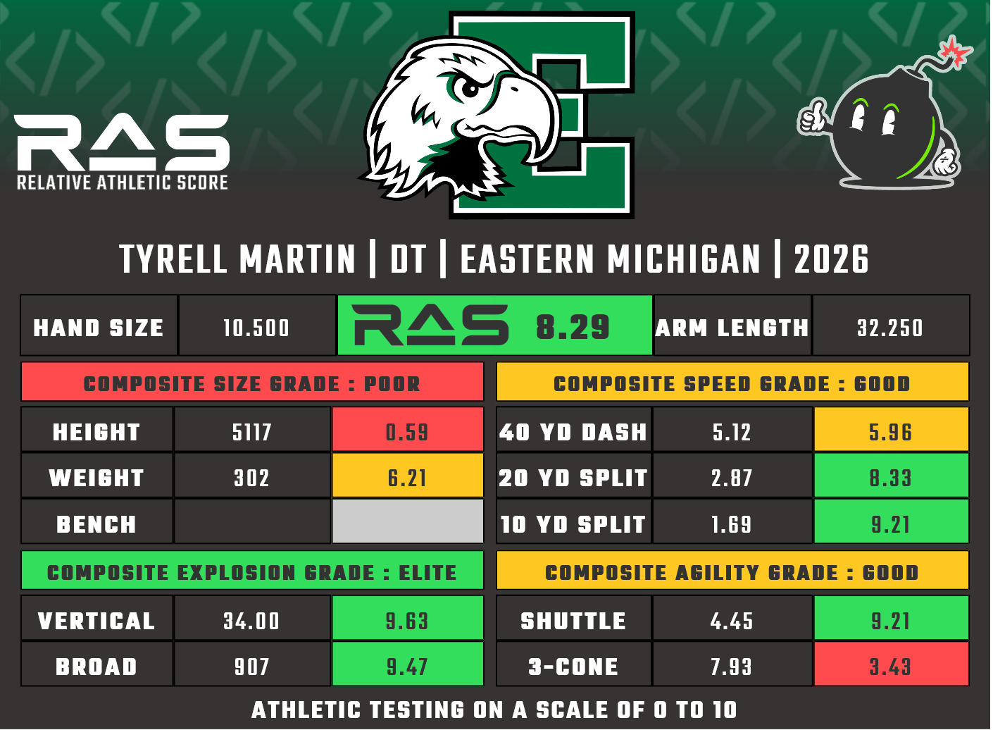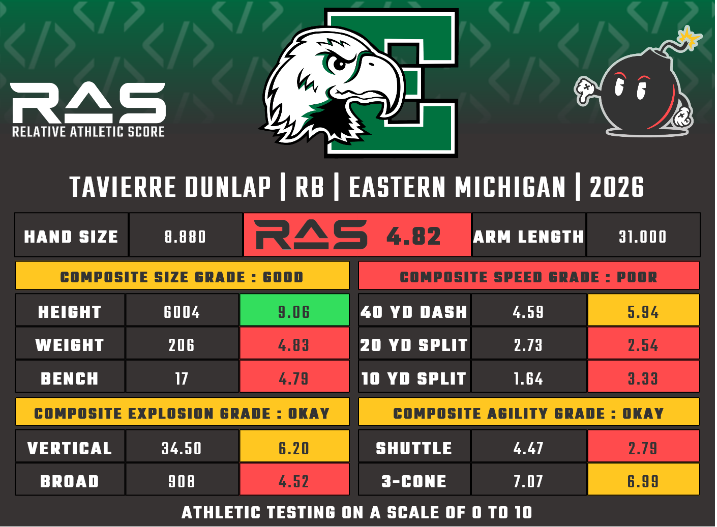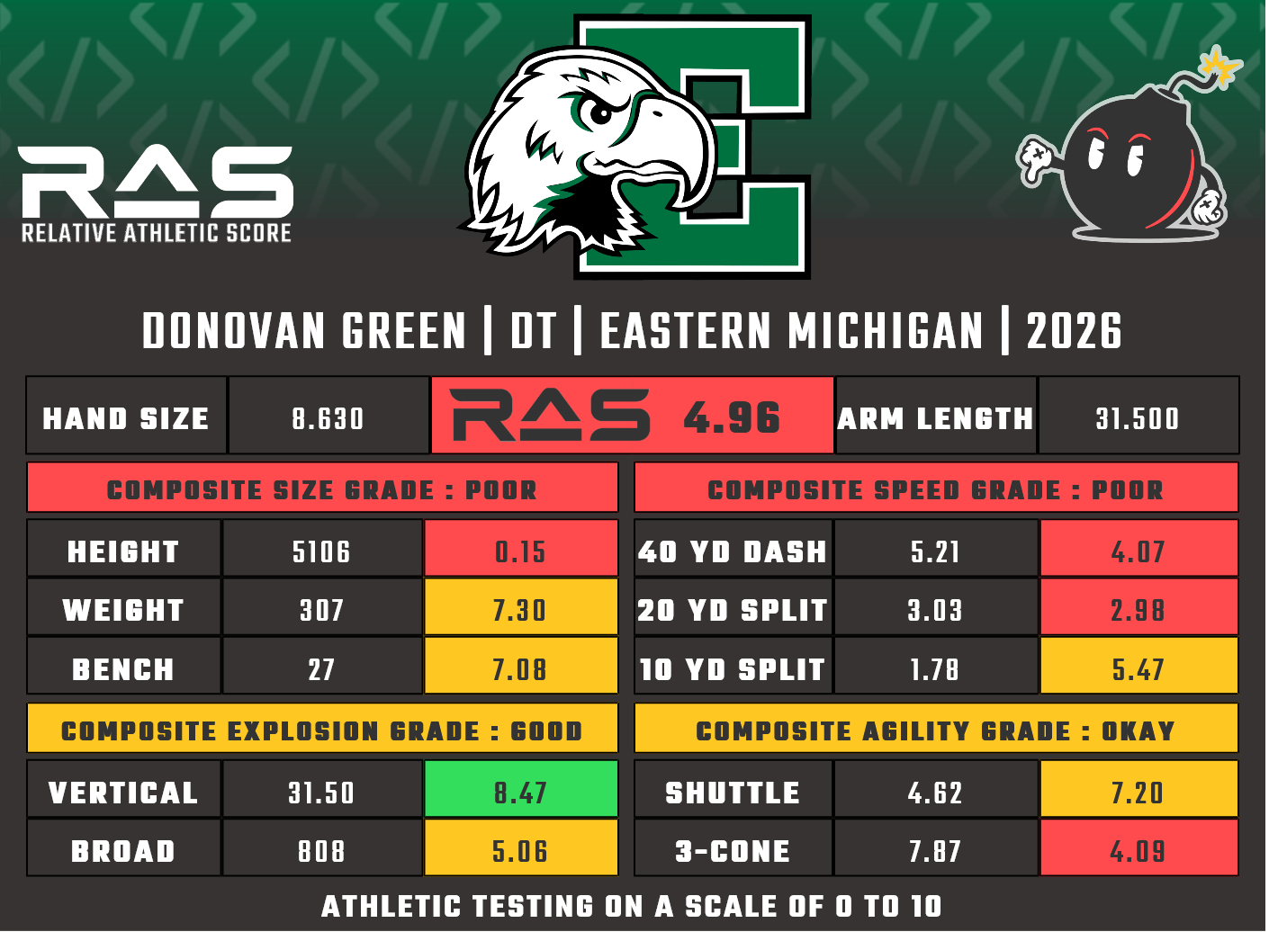 For our reports, we’ve pulled raw numbers from both Draft Scout and RAS.football to populate RAS score cards. These cards are used with express written permission of RAS’ creator Kent Lee Platte.