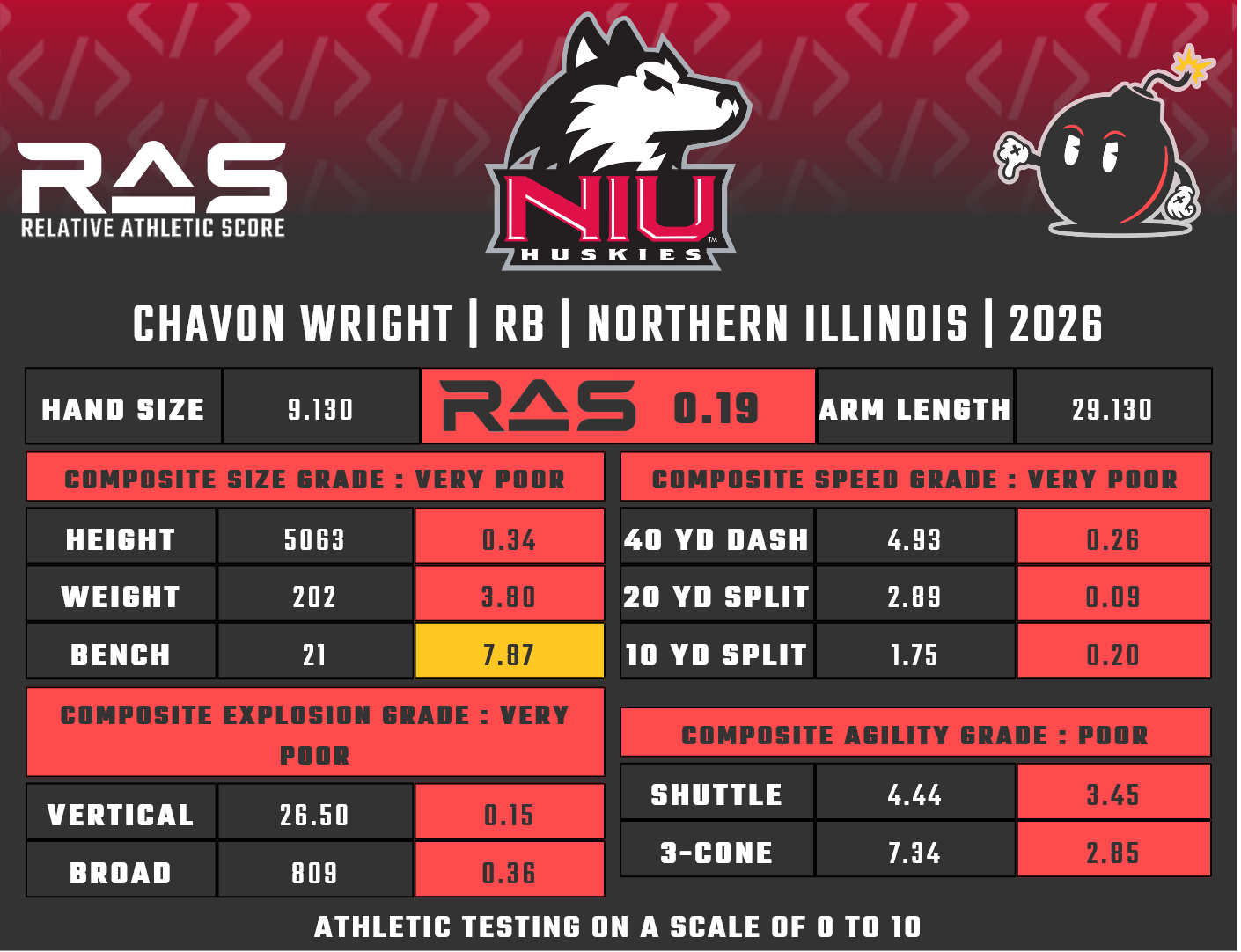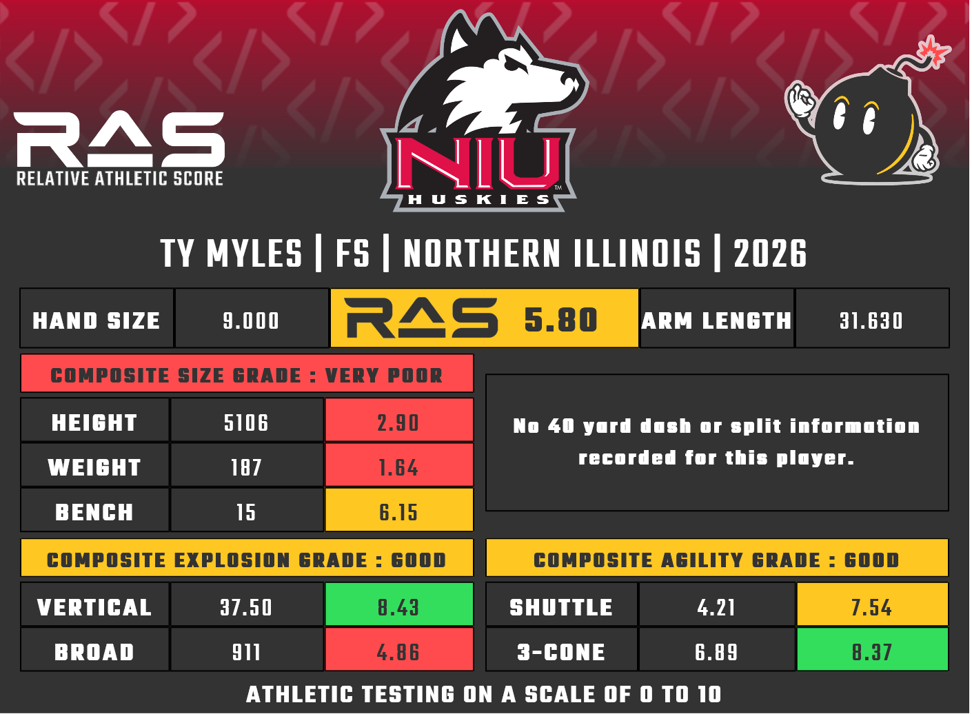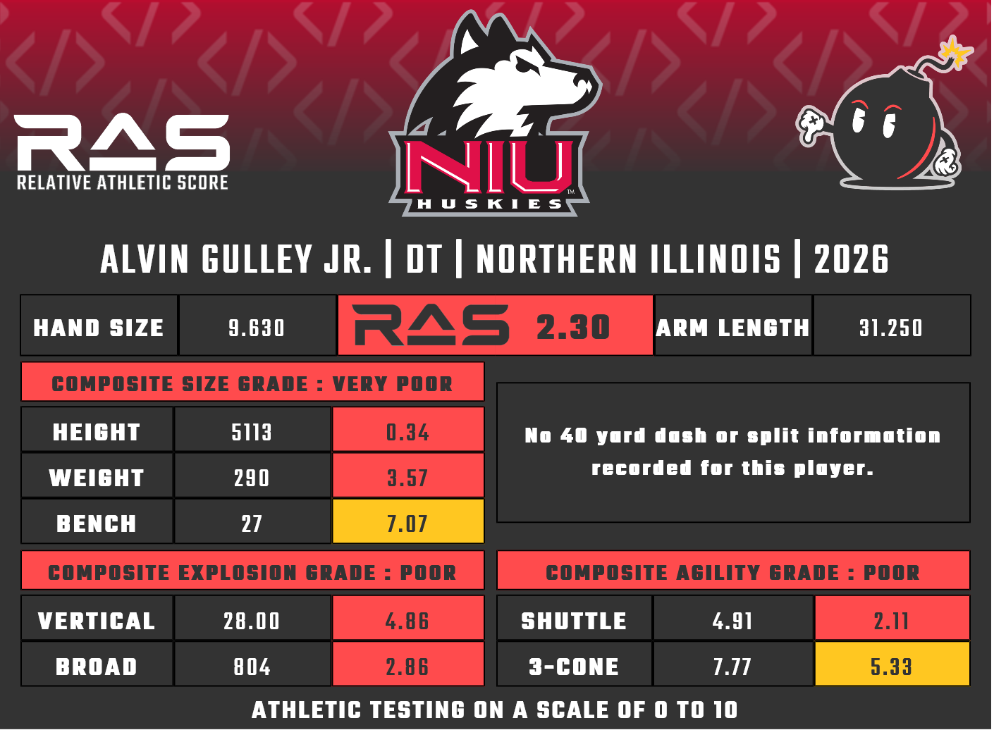 - 10-yard split: N/A