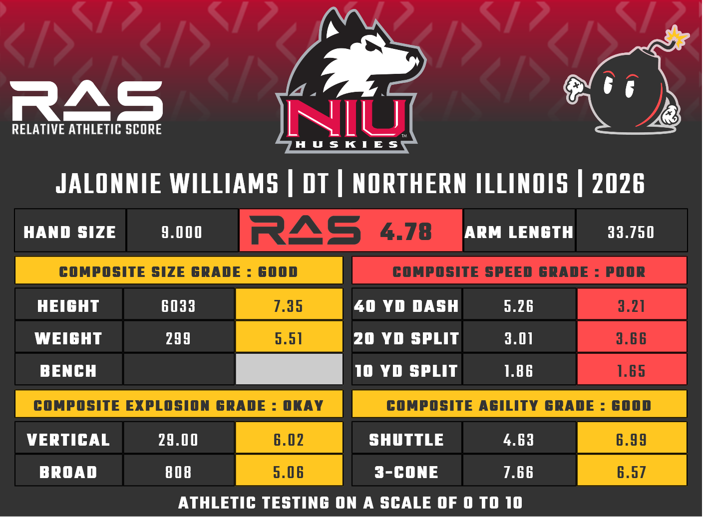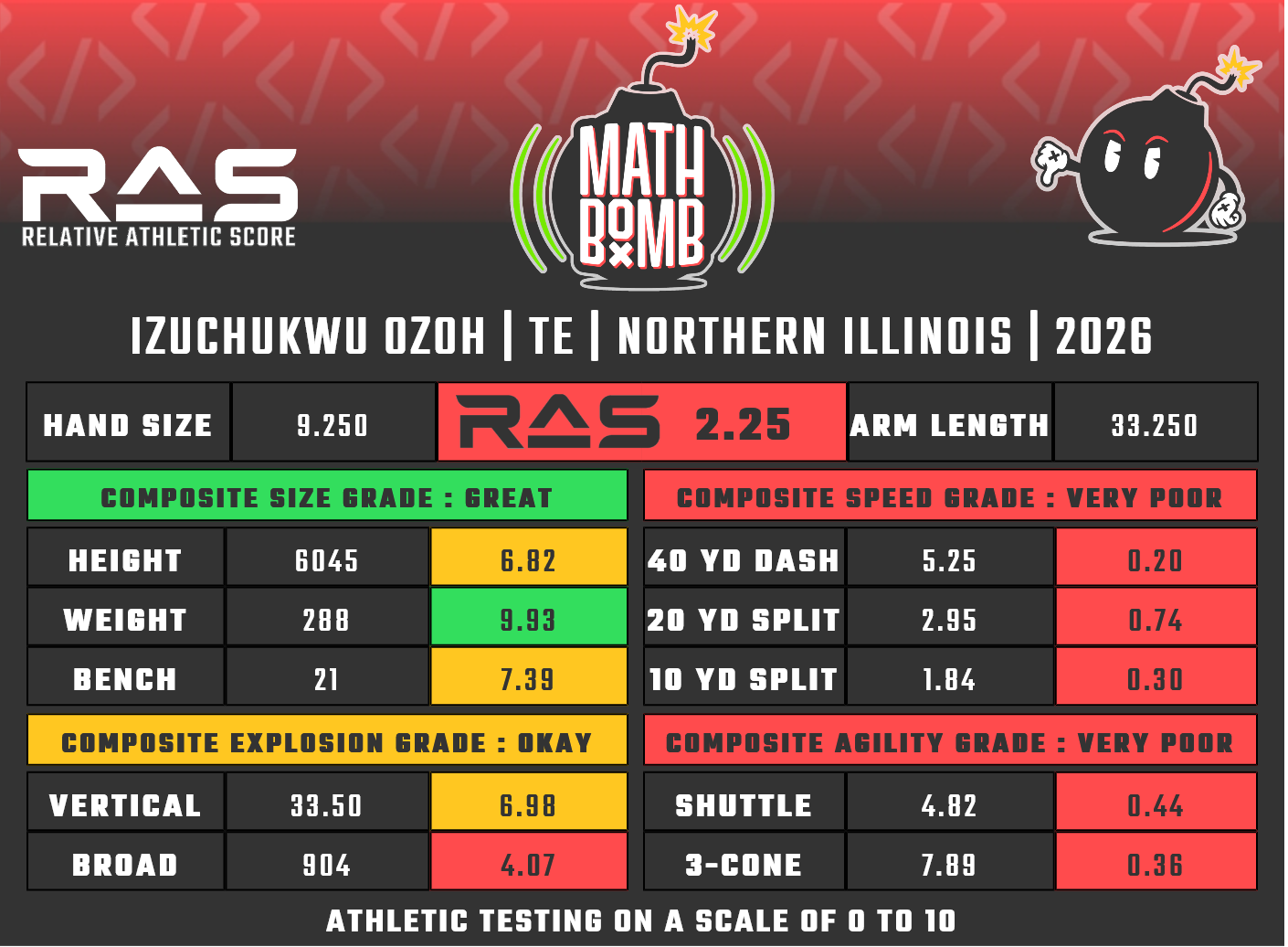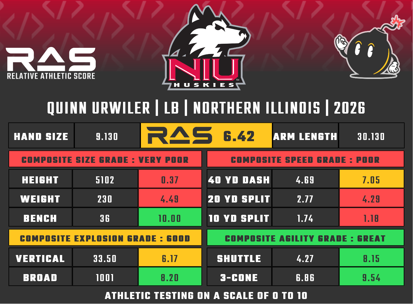 For our reports, we’ve pulled raw numbers from both Draft Scout and RAS.football to populate RAS score cards. These cards are used with express written permission of RAS’ creator Kent Lee Platte.