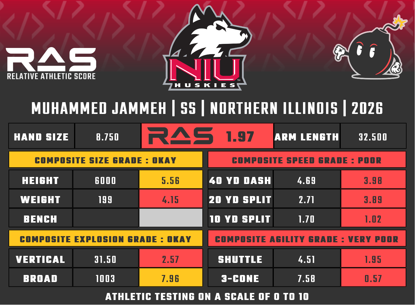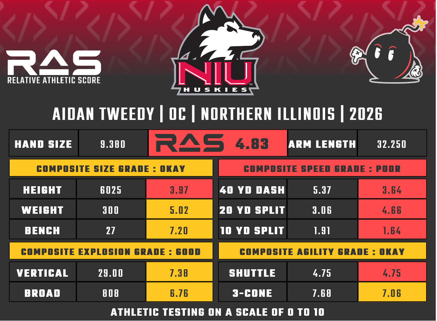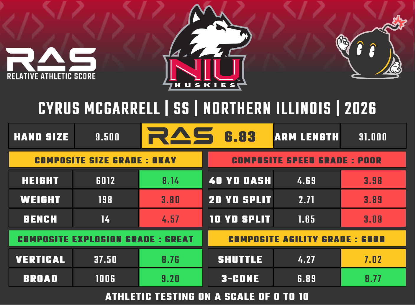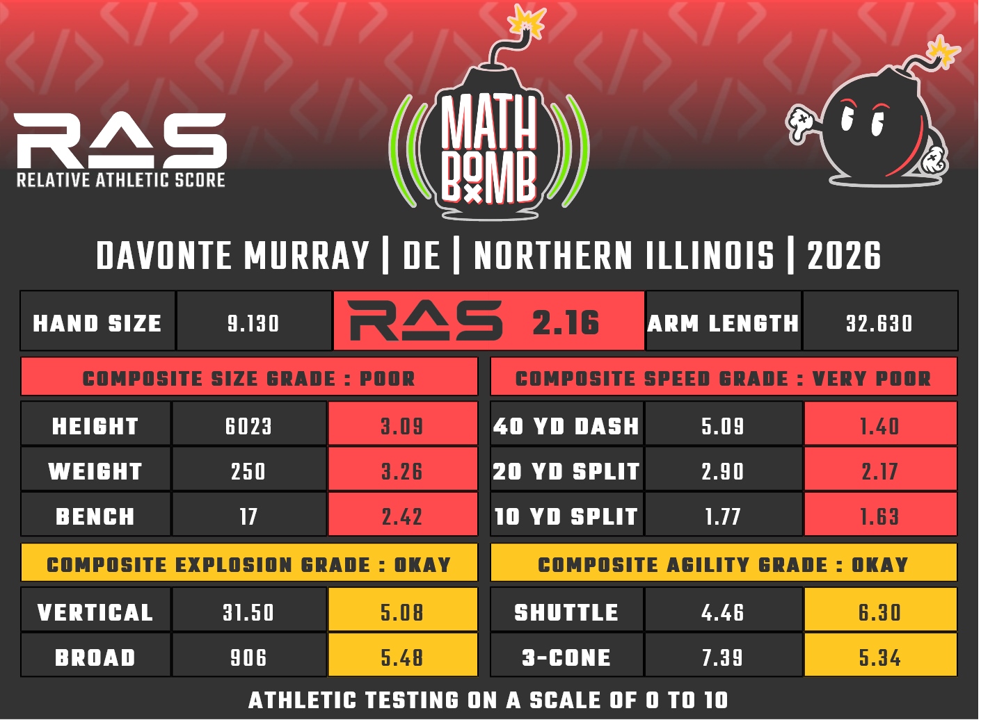 For our reports, we’ve pulled raw numbers from both Draft Scout and RAS.football to populate RAS score cards. These cards are used with express written permission of RAS’ creator Kent Lee Platte.