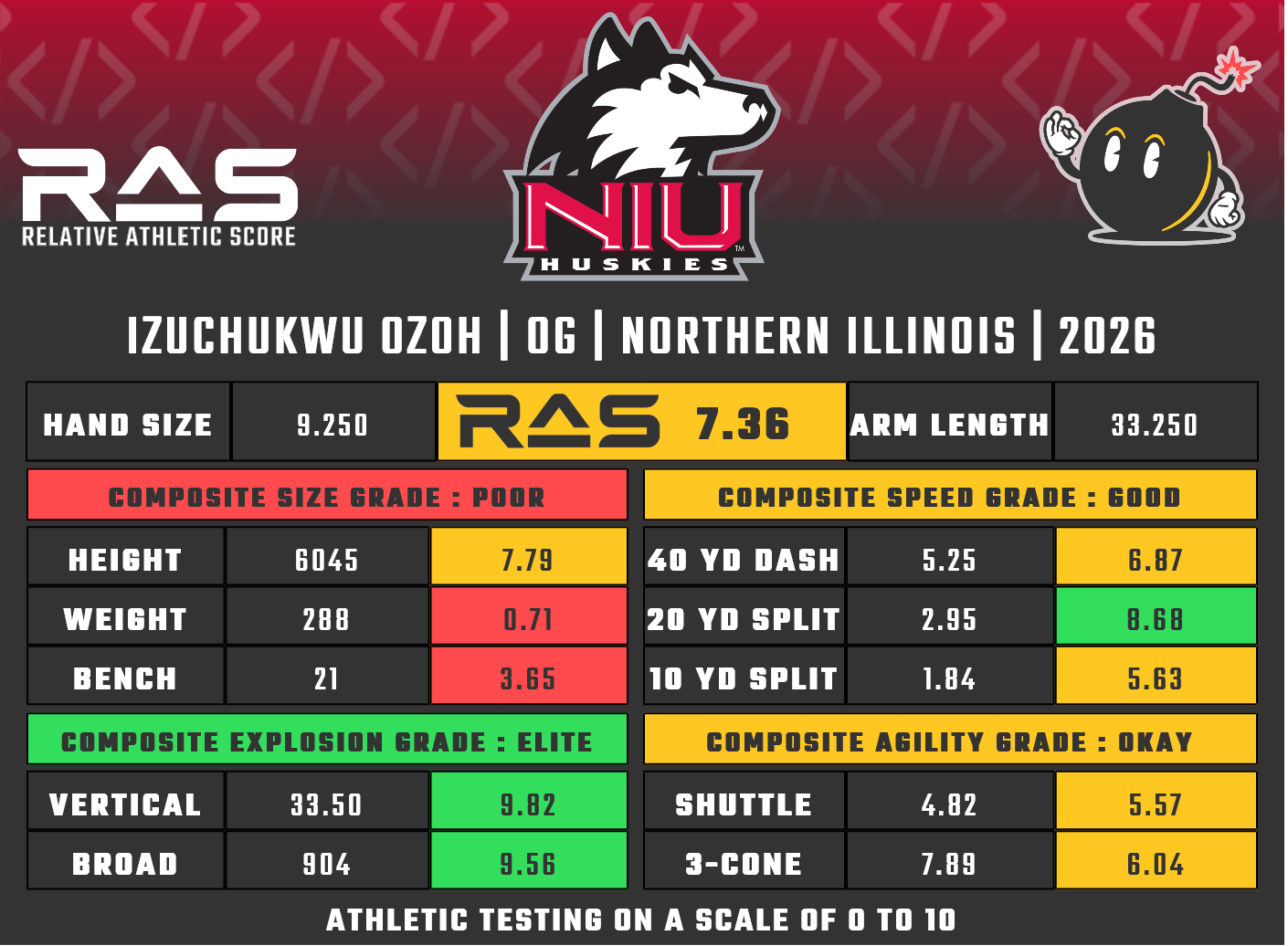 Relative Athletic Score (as offensive guard): 7.36