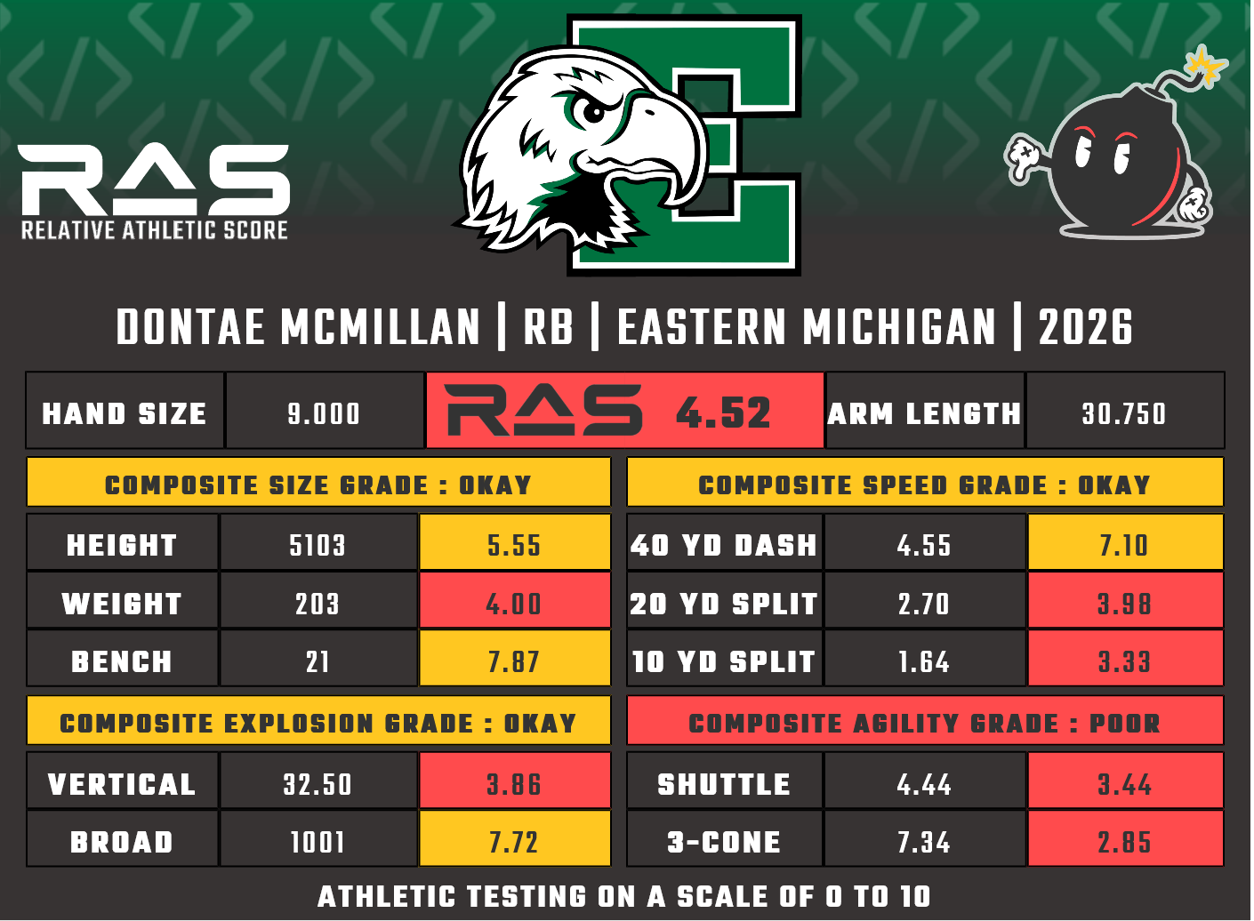 Nonetheless, McMillan hopes to go further in his pro endeavors than recent EMU running back standouts Samson Evans and Delbert Mimms. He begins his career in one of the best destinations for a young running back, learning behind future Hall of Famer Derrick Henry.