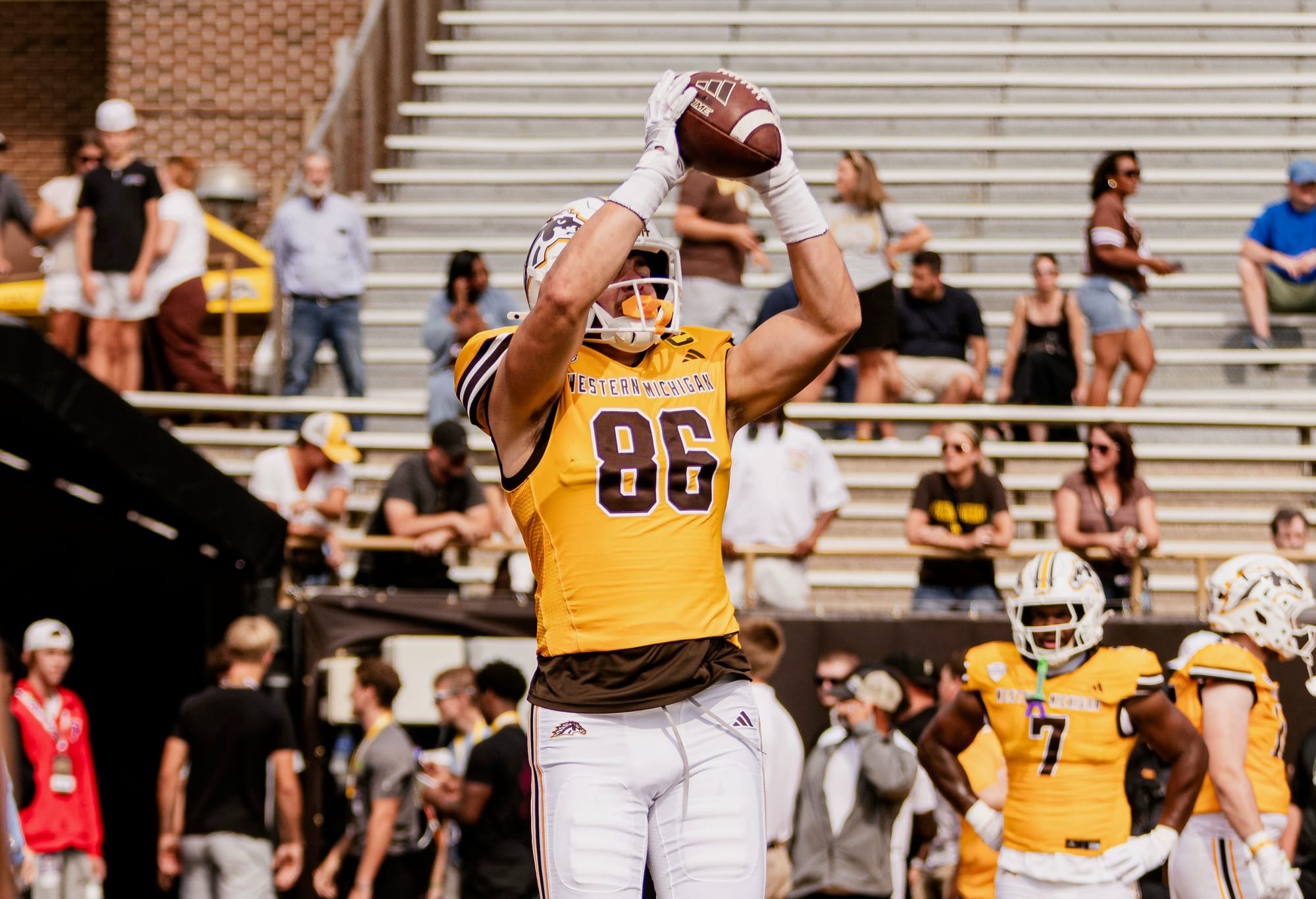 "I saw this kid who was a walk-on, and he was a little bit different than the other freshmen at the time," former Western Michigan tight end Austin Hence said. "He wasn't too shy. He felt comfortable and you got to see his true colors early on. You got to see his personality early on. The one thing that stood out to me about him was he was always willing to call out people if they weren't doing something right. He never felt out of place doing that."